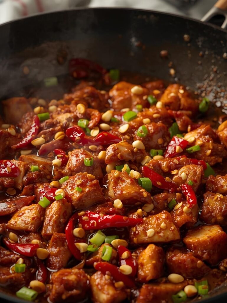 Famously known in the West as Kung Pao Chicken, is a signature Sichuan dish celebrated for its bold, complex flavors. Translating to “Governor Ding’s Chicken,” the recipe is believed to originate from the Qing dynasty when Governor Ding Baozhen (Gong Bao) sought a dish that balanced spicy, sour, and sweet notes—a hallmark of Sichuan cuisine. Central to its identity are tender chicken pieces, crisp vegetables like bell peppers and scallions, and a medley of Sichuan peppercorns and dried chilies, which create the dish’s iconic “numb and spicy” sensation.